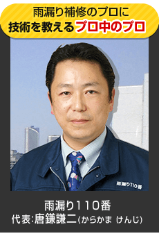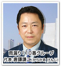 はじめまして。雨漏り110番の代表、唐鎌謙二と申します。