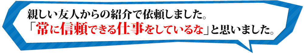 「親しい友人からの紹介で依頼しました。『常に信頼できる仕事をしているな』と思いました。」
